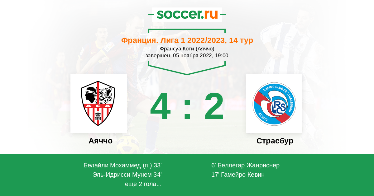 | Аяччо | 20:27 | 11:8 | 9:19 |
