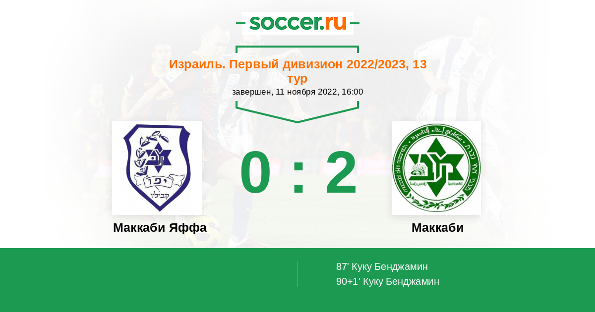 | Маккаби Яффа | 4:0 | 0:0 | 4:0 |