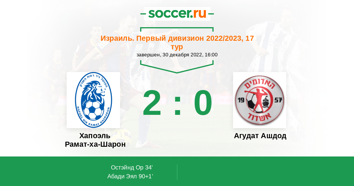 | Хапоэль Рамат-ха-Шарон | Агудат Ашдод | |
