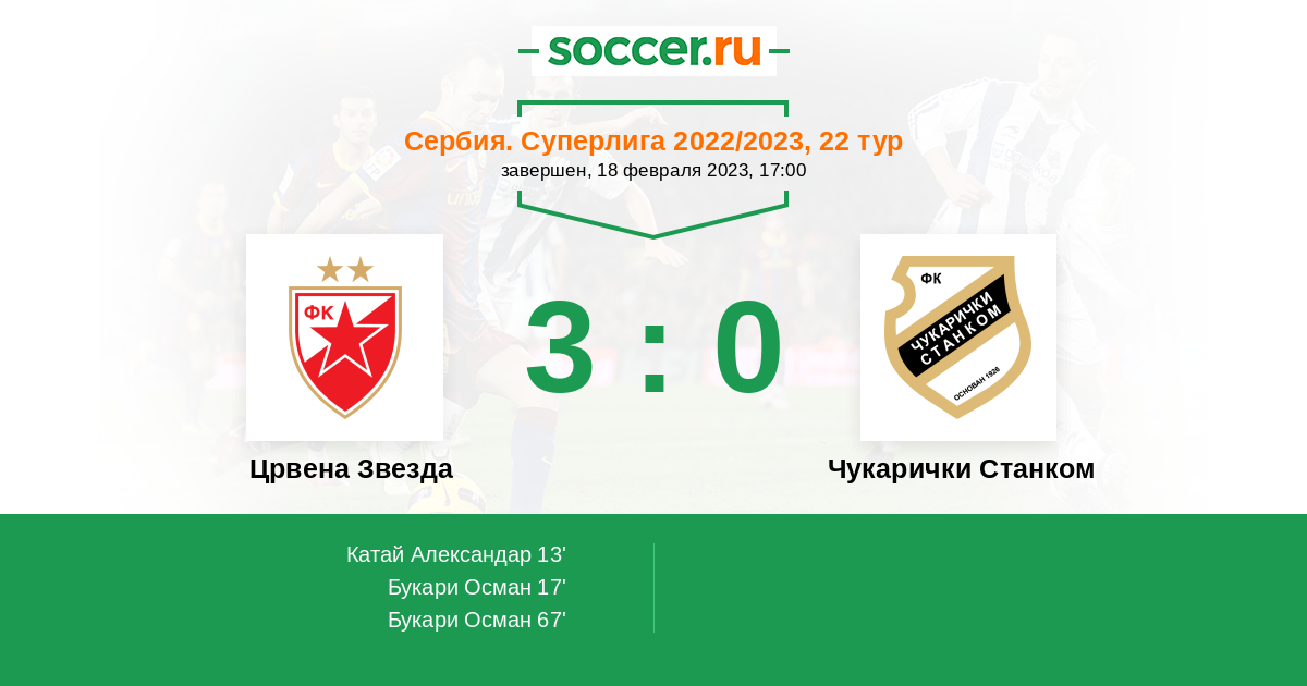 Последние 5 игр дома Чукарички Станком