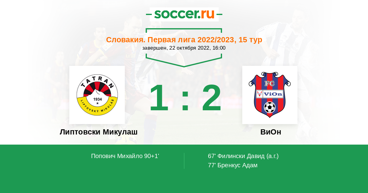| Липтовски Микулаш | 8:16 | 2:6 | 6:10 |