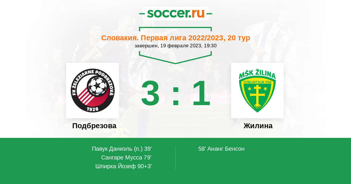 | Жилина | 38:30 | 19:10 | 19:20 |