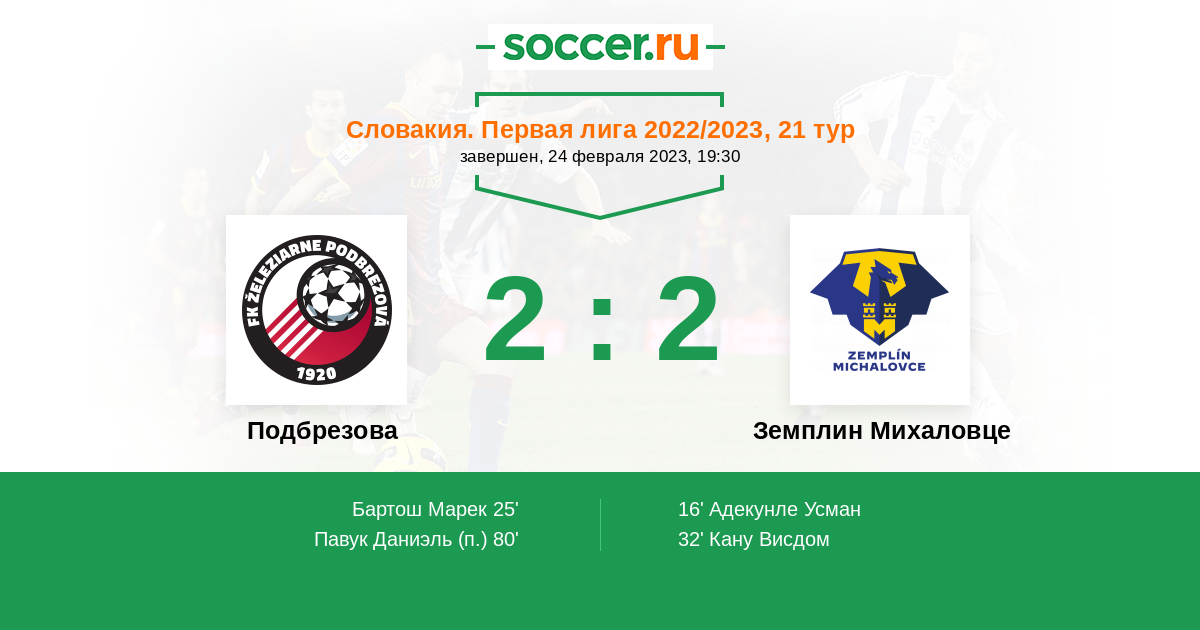 | Подбрезова | Земплин Михаловце | |