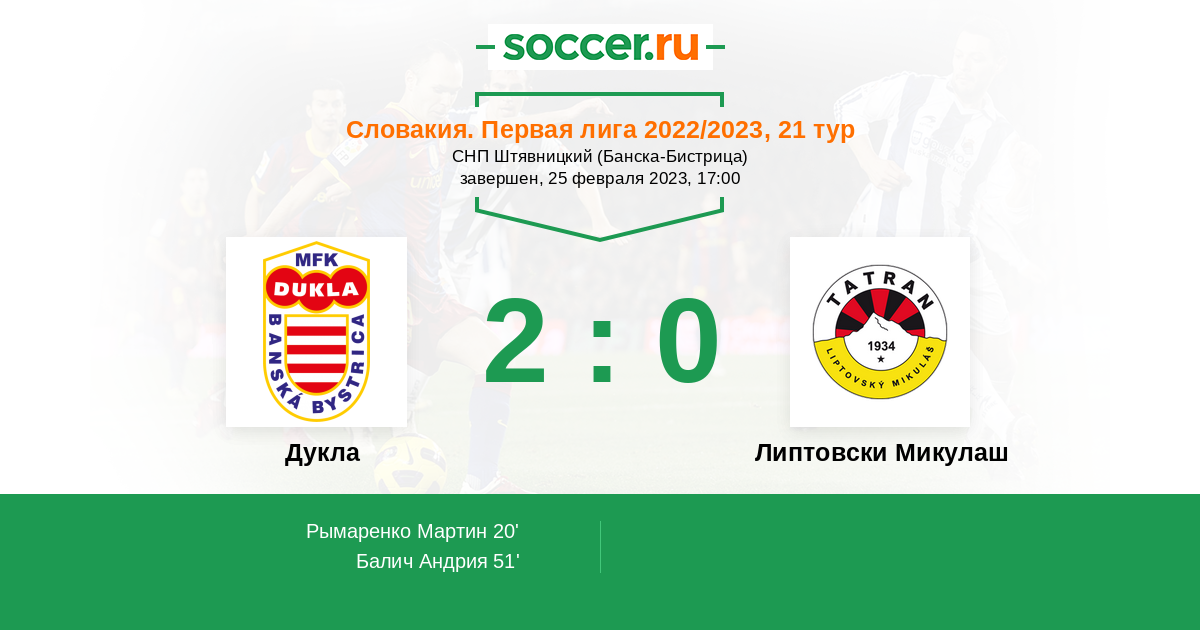 | Дукла | 3:1 | 1:0 | 2:1 |