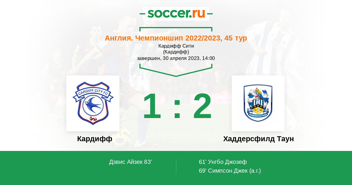 | Кардифф | Хаддерсфилд Таун | |