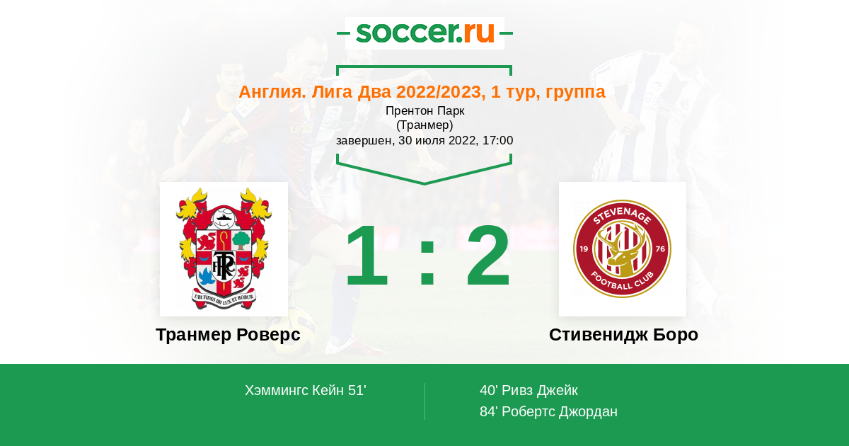 | Транмер Роверс | Стивенидж Боро | |