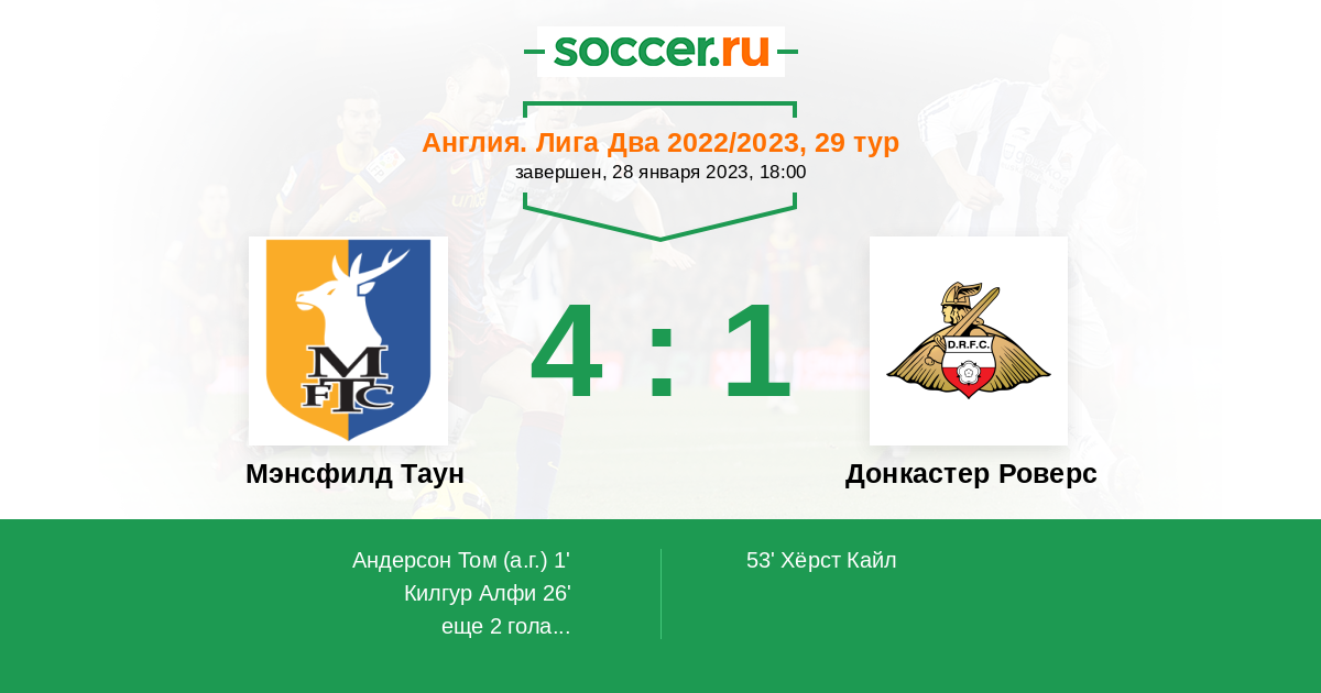| Мэнсфилд Таун | 26:24 | 10:12 | 16:12 |