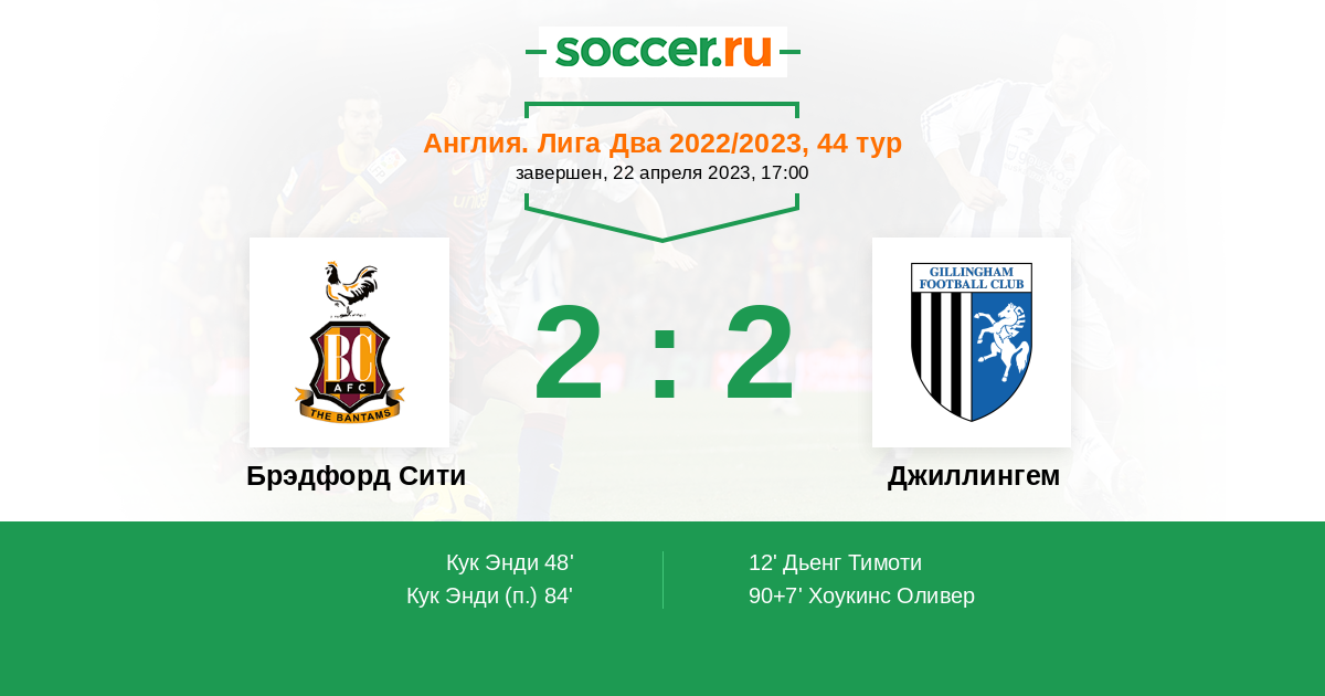 | Брэдфорд Сити | Джиллингем | |