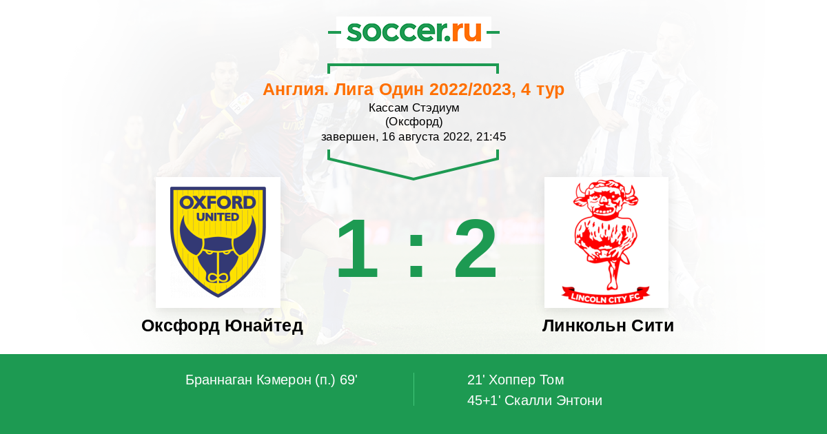 | Оксфорд Юнайтед | Линкольн Сити | |