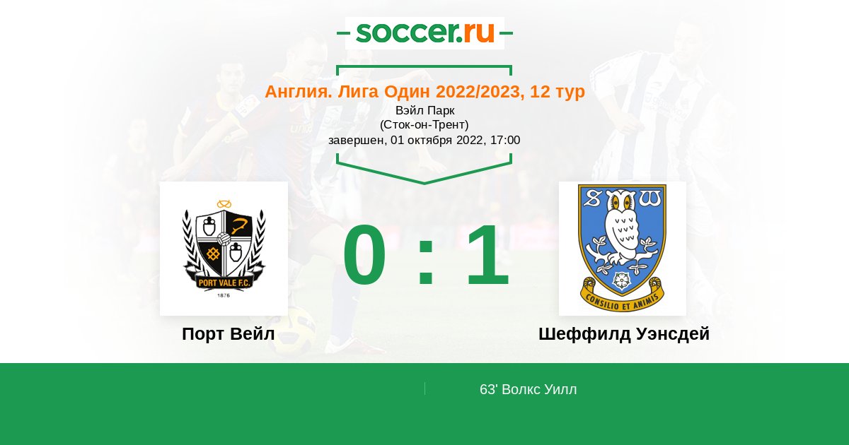 | Порт Вейл | Шеффилд Уэнсдей | |