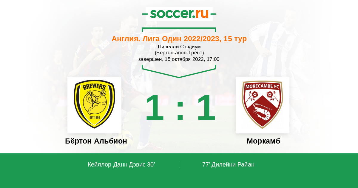| Моркамб | 55:36 | 29:11 | 26:25 |