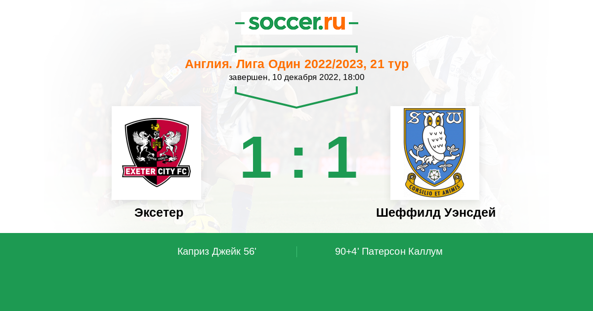 | Эксетер | Шеффилд Уэнсдей | |