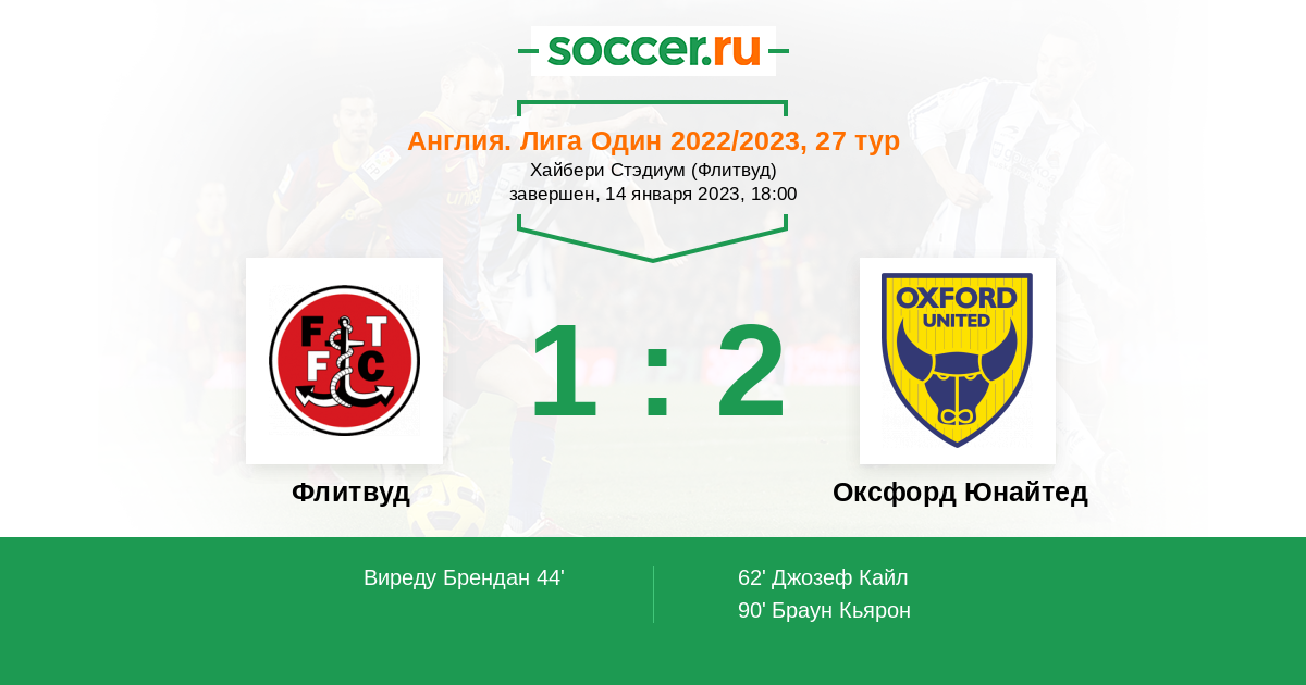 | Флитвуд | Оксфорд Юнайтед | |