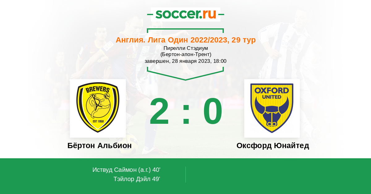| Бёртон Альбион | Оксфорд Юнайтед | |