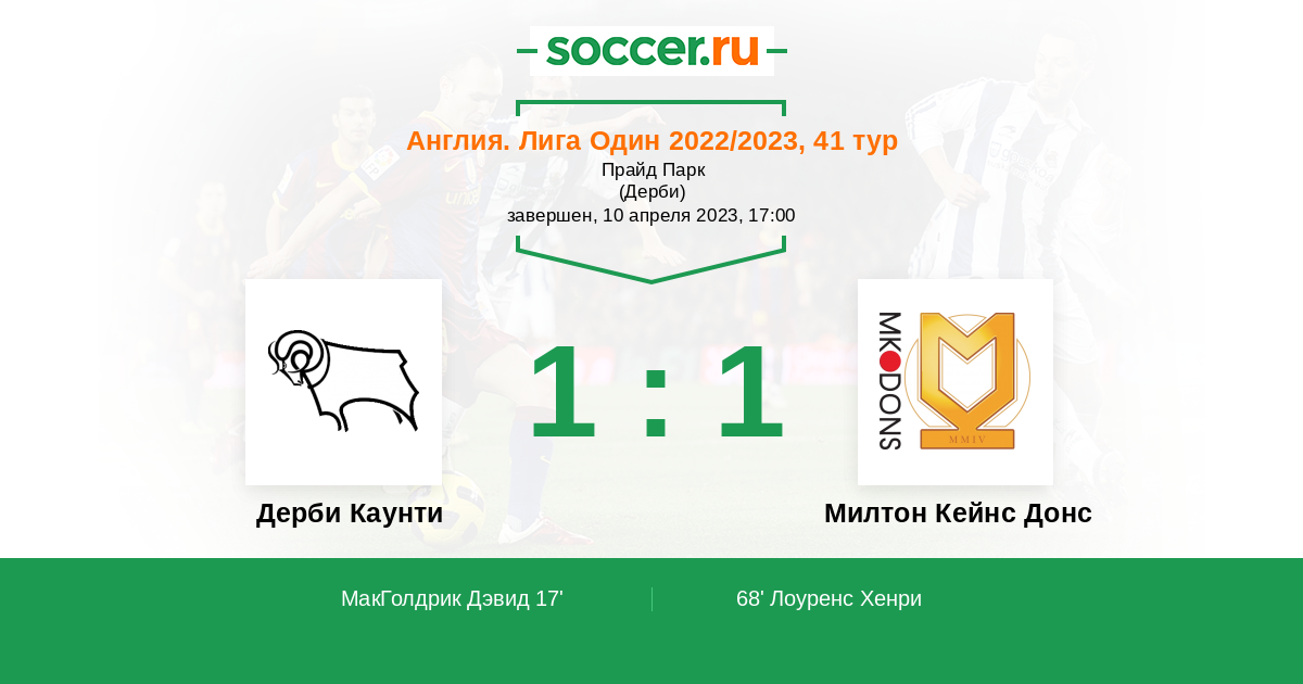 | Дерби Каунти | Милтон Кейнс Донс | |