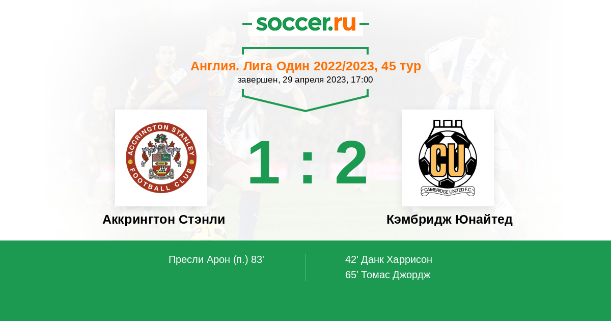 | Аккрингтон Стэнли | Кэмбридж Юнайтед | |