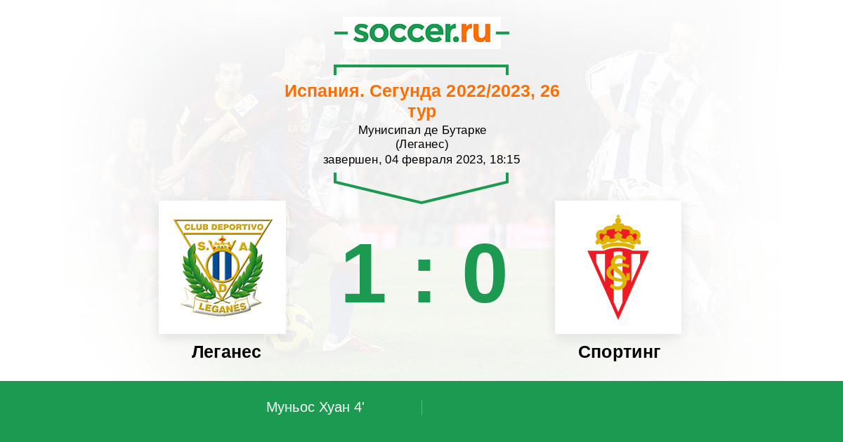 | Леганес | 18:34 | 6:16 | 12:18 |
