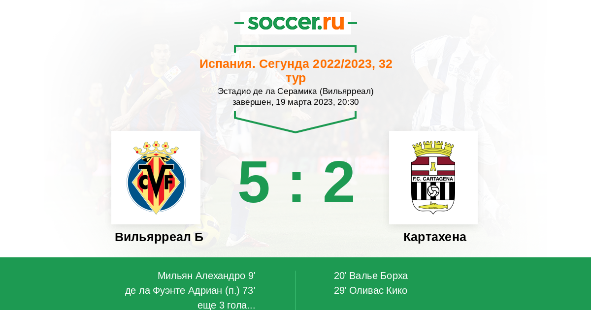 | Вильярреал Б | 4:9 | 1:2 | 3:7 |