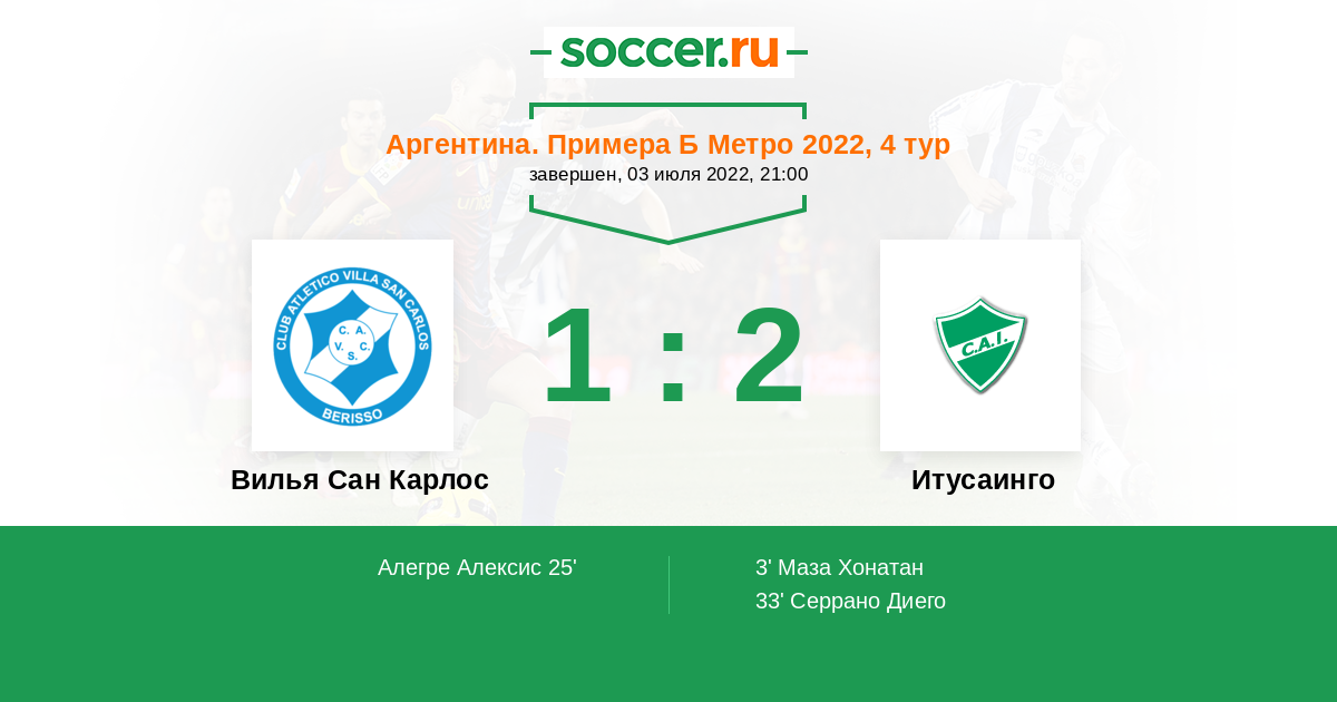 | Аргентина. Примера С Метро | 4 | 2 | 0 | 2 |