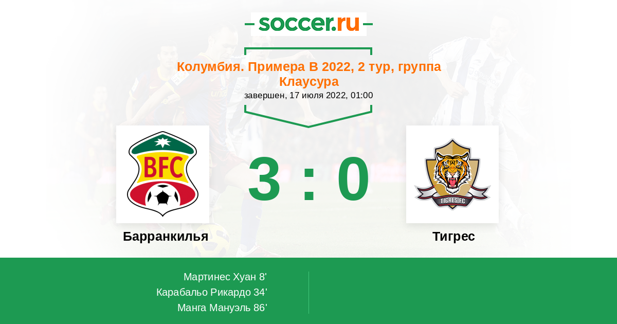 | Барранкилья | 35:44 | 25:21 | 10:23 |