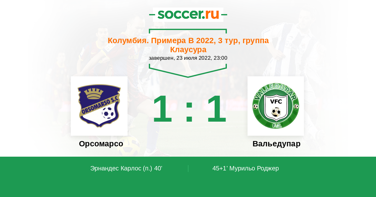 | Орсомарсо | 17:20 | 5:4 | 12:16 |
