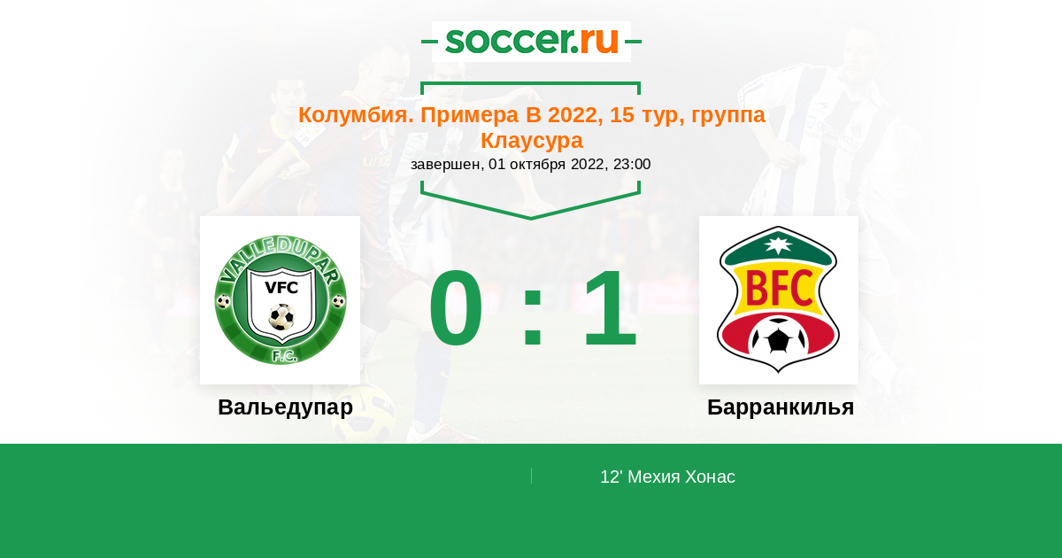 | Вальедупар | 54:36 | 35:13 | 19:23 |