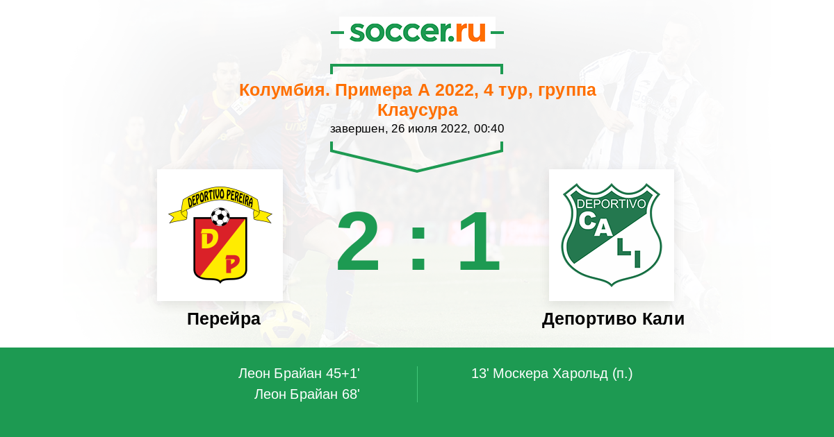 | Депортиво Кали | 57:36 | 36:16 | 21:20 |
