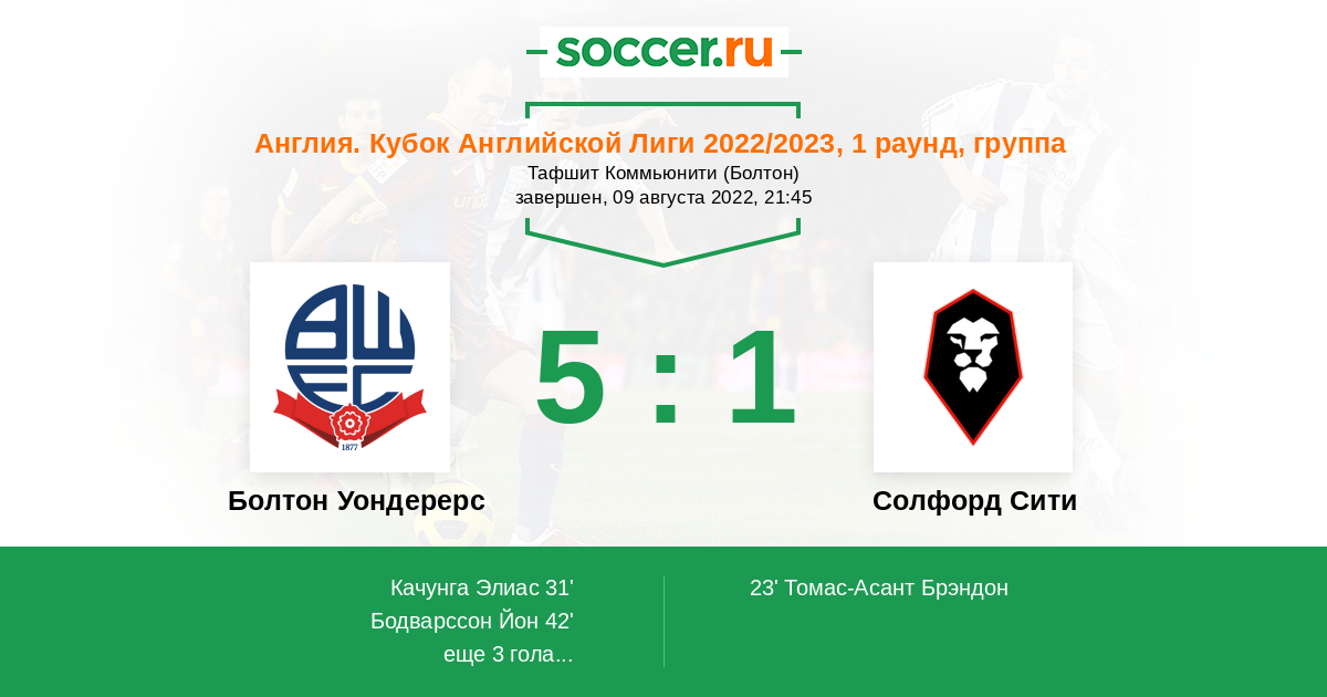 | Болтон Уондерерс | Солфорд Сити | |