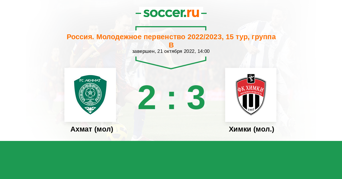 | Ахмат (мол) | 10:7 | 4:3 | 6:4 |