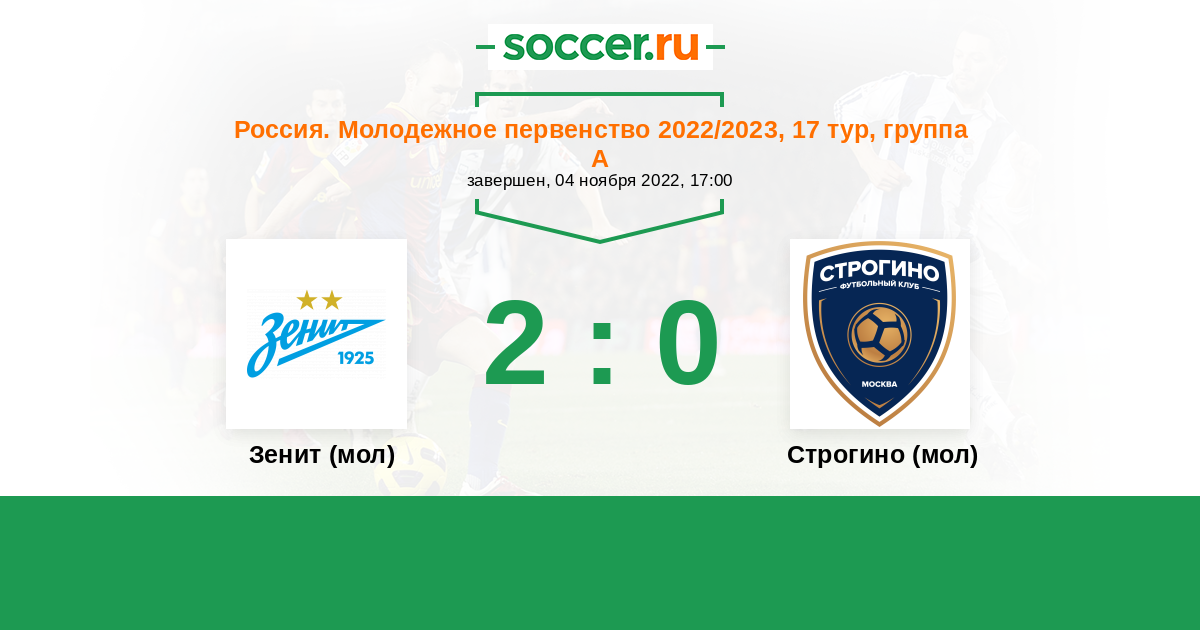 | Зенит (мол) | 13:1 | 4:0 | 9:1 |