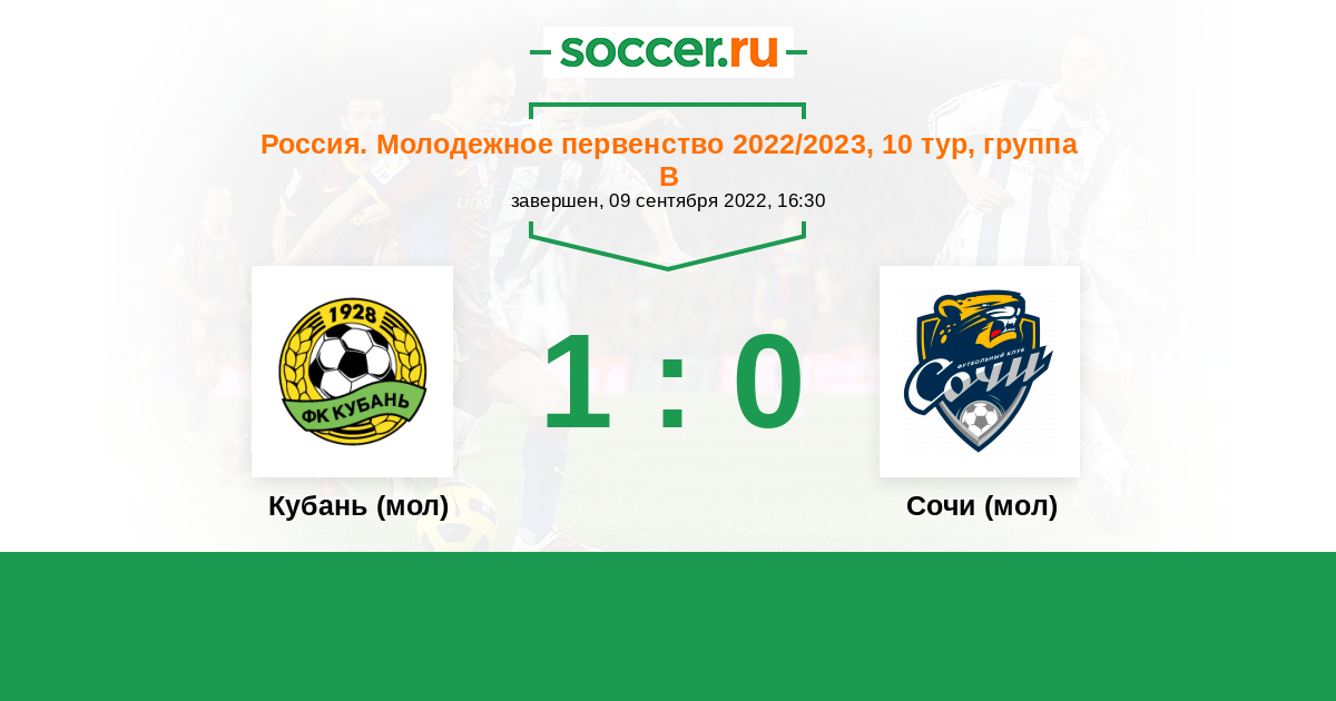 | Кубань (мол) | 1:0 | 0:0 | 1:0 |