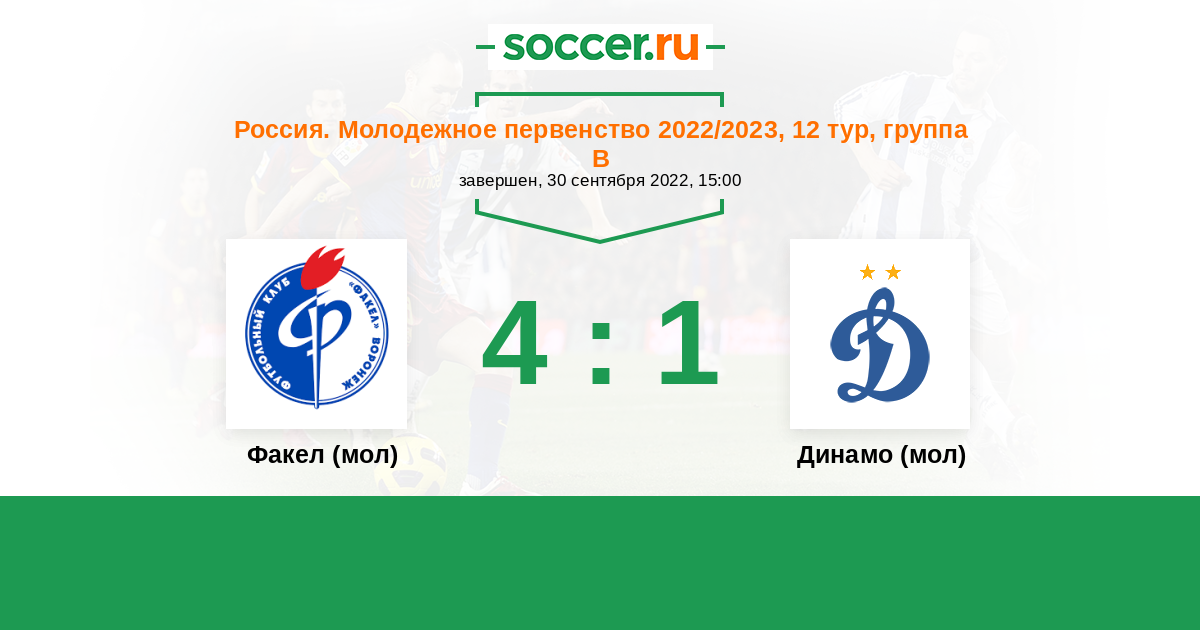 | Факел (мол) | 3:8 | 3:6 | 0:2 |