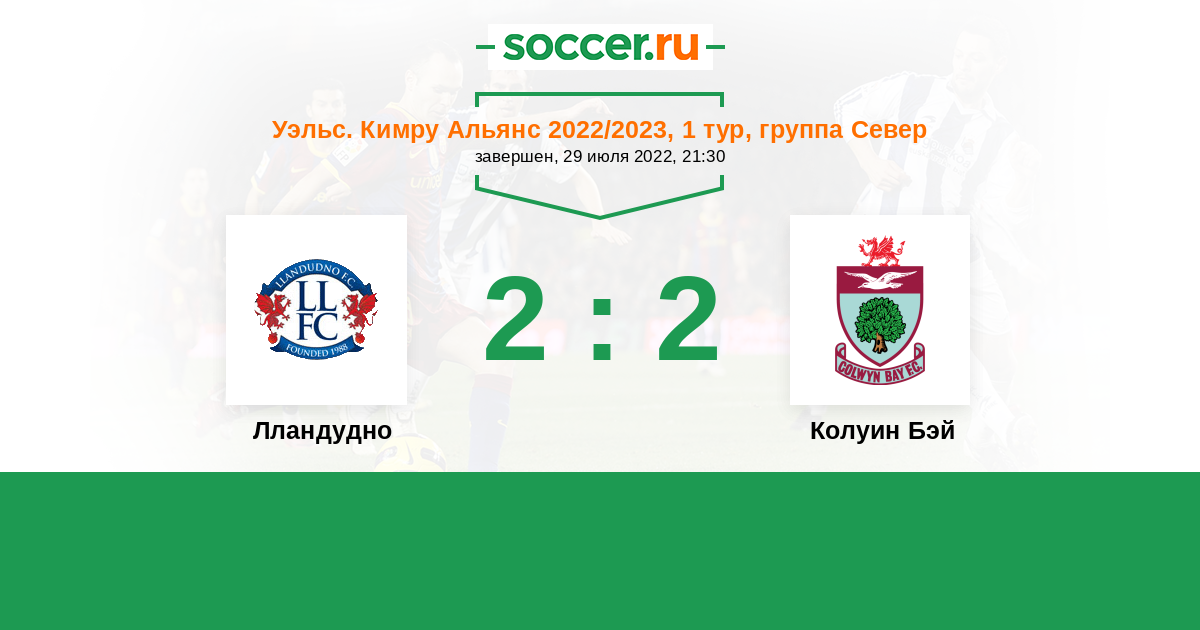 Последние 5 игр дома Лландудно