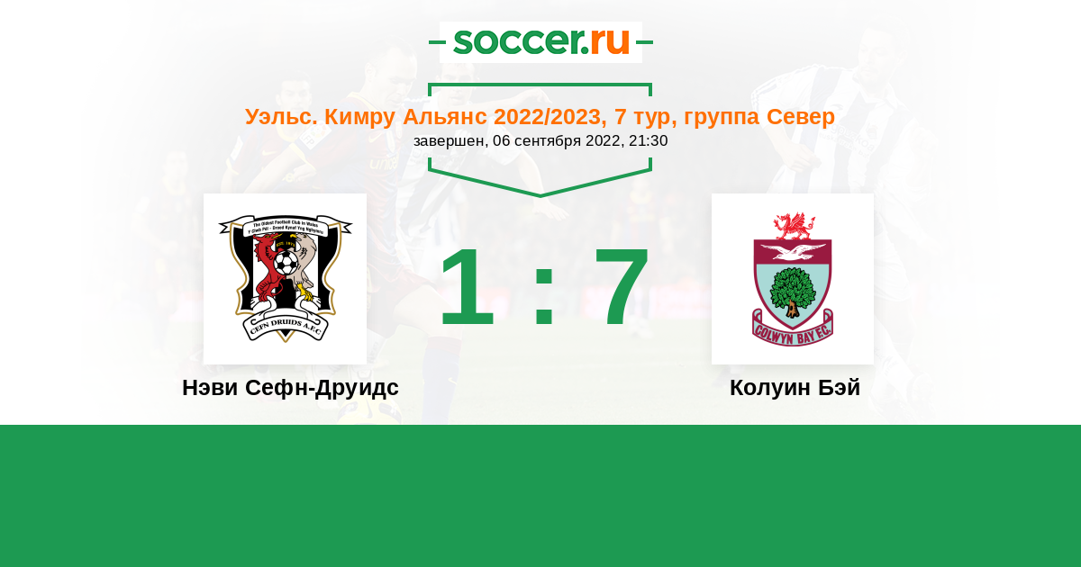 | Нэви Сефн-Друидс | 1:4 | 0:0 | 1:4 |