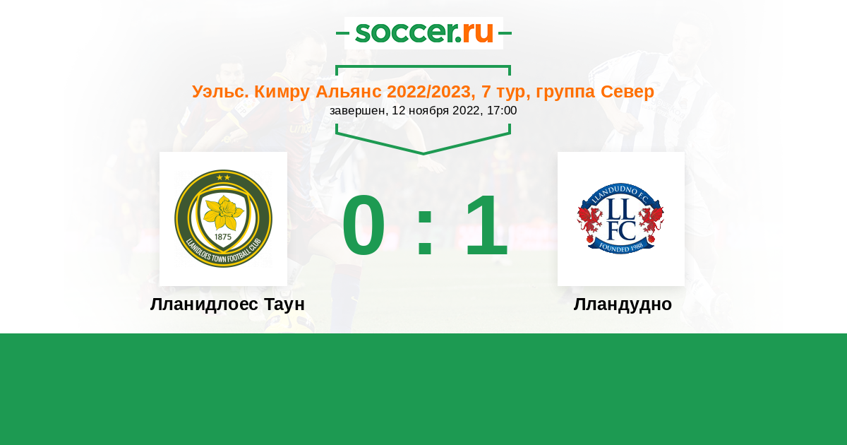 | Лланидлоес Таун | 12:31 | 11:8 | 1:23 |