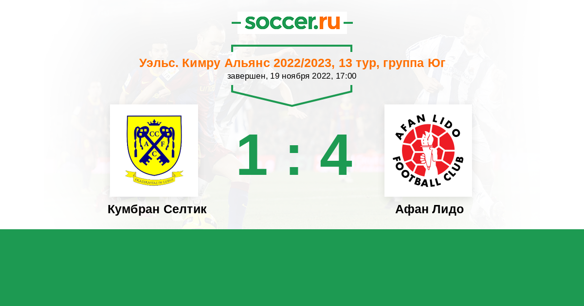 | Кумбран Селтик | 21:43 | 15:16 | 6:27 |
