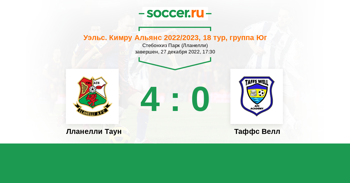 | Лланелли Таун | 14:7 | 9:2 | 5:5 |