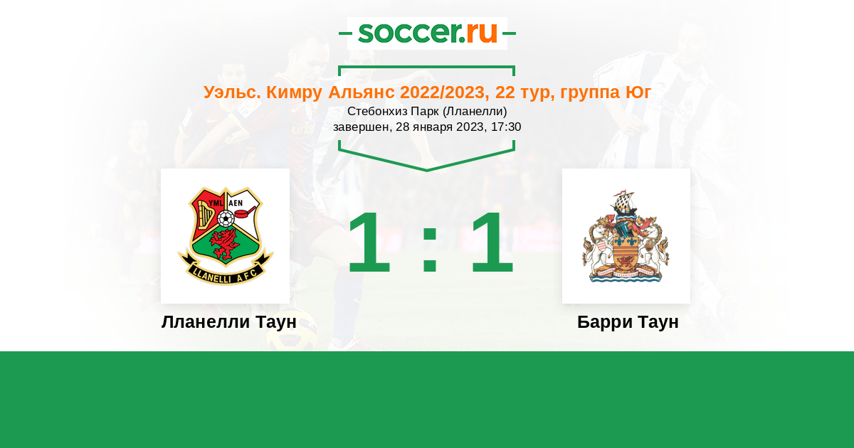 | Лланелли Таун | 5:16 | 1:3 | 4:13 |