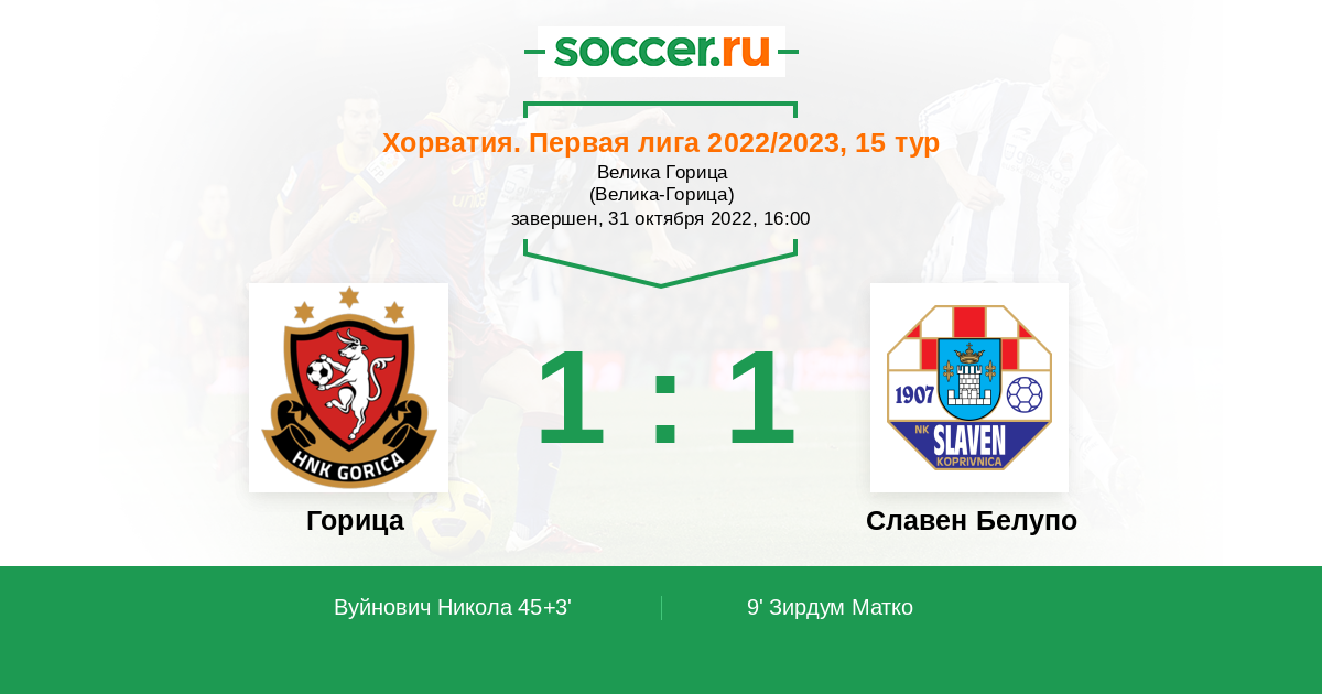 | Славен Белупо | 43:30 | 23:12 | 20:18 |