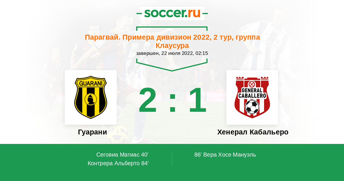 | Хенерал Кабальеро | 10:27 | 3:9 | 7:18 |