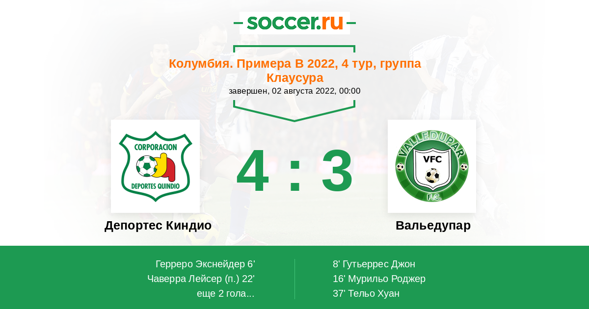 | Депортес Киндио | Вальедупар | |