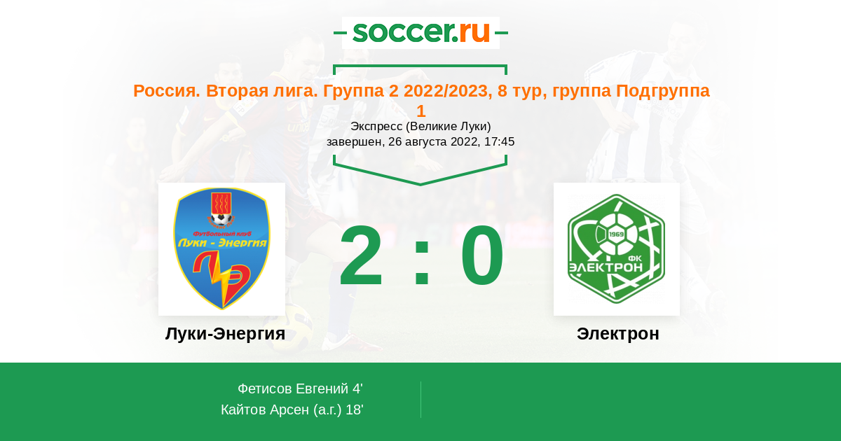 | Луки-Энергия | 6:0 | 1:0 | 5:0 |