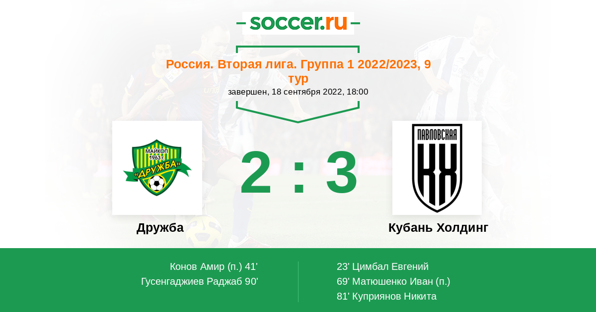| Кубань Холдинг | 20:13 | 13:7 | 7:6 |