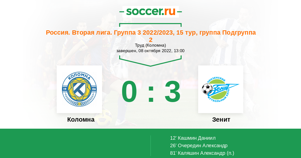 | Коломна | Зенит | |