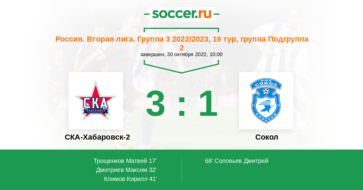 | Сокол | 2:1 | 1:1 | 1:0 |