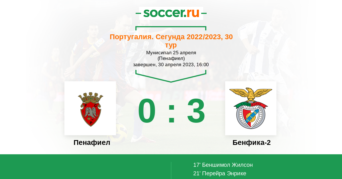 | Бенфика-2 | 19:20 | 13:12 | 6:8 |