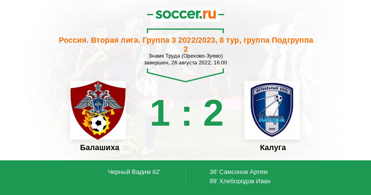 | Балашиха | Калуга | |