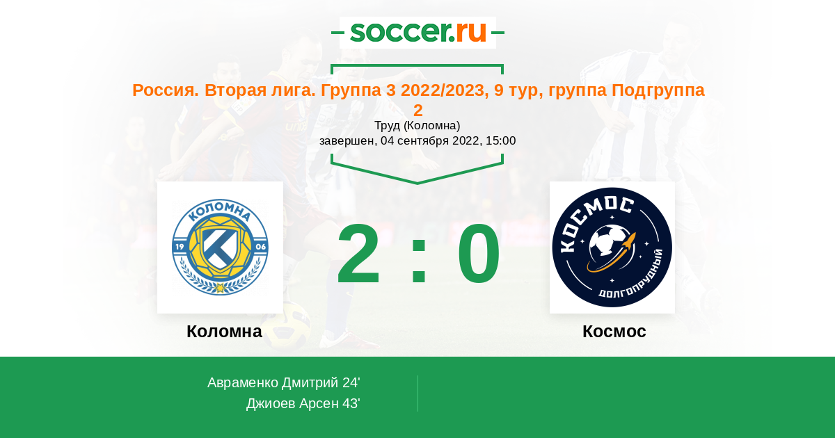 | Коломна | 6:16 | 4:8 | 2:8 |