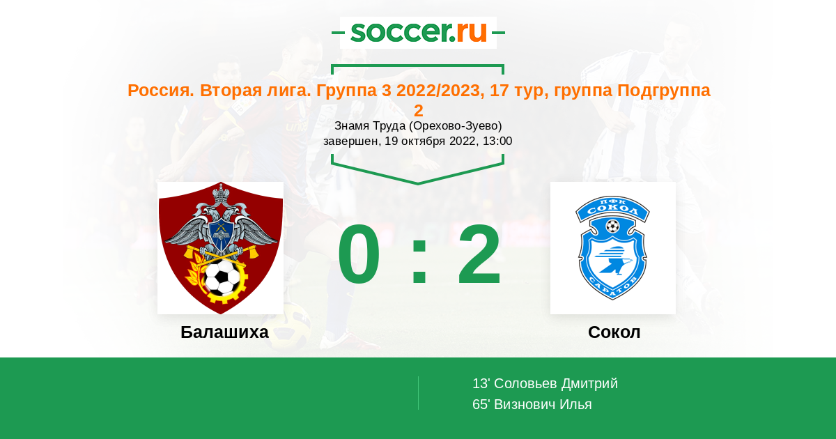 | Сокол | 1:0 | 1:0 | 0:0 |