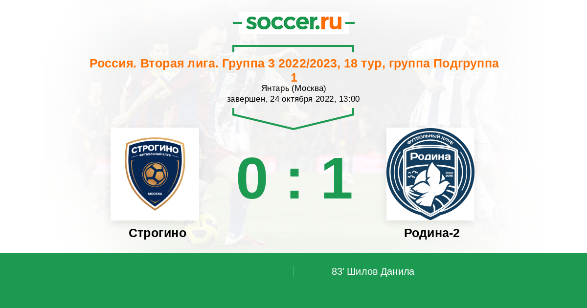 | Россия. Вторая лига. Группа 3 | 1 | 0 | 0 | 1 |